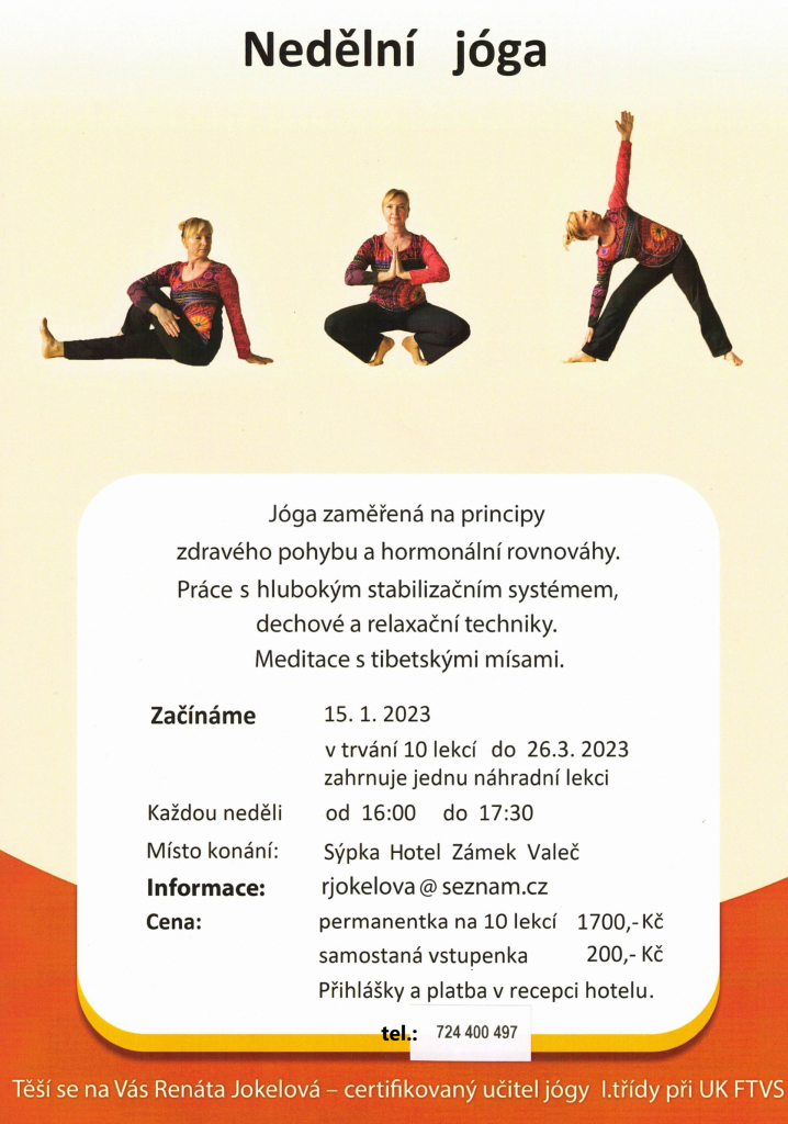 NEDĚLNÍ JÓGA od 15.1.2023 - Sýpka Hotel Zámek Valeč