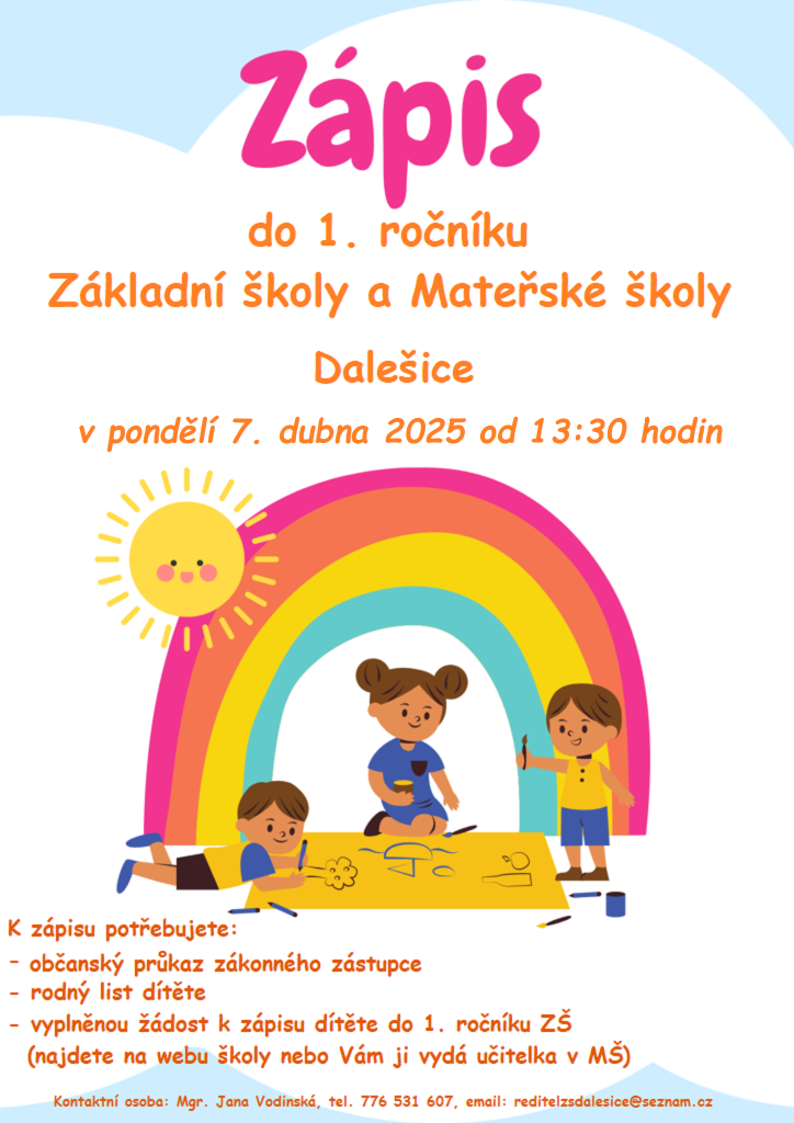 ZÁPIS DO 1.ROČNÍKU ZŠ DALEŠICE